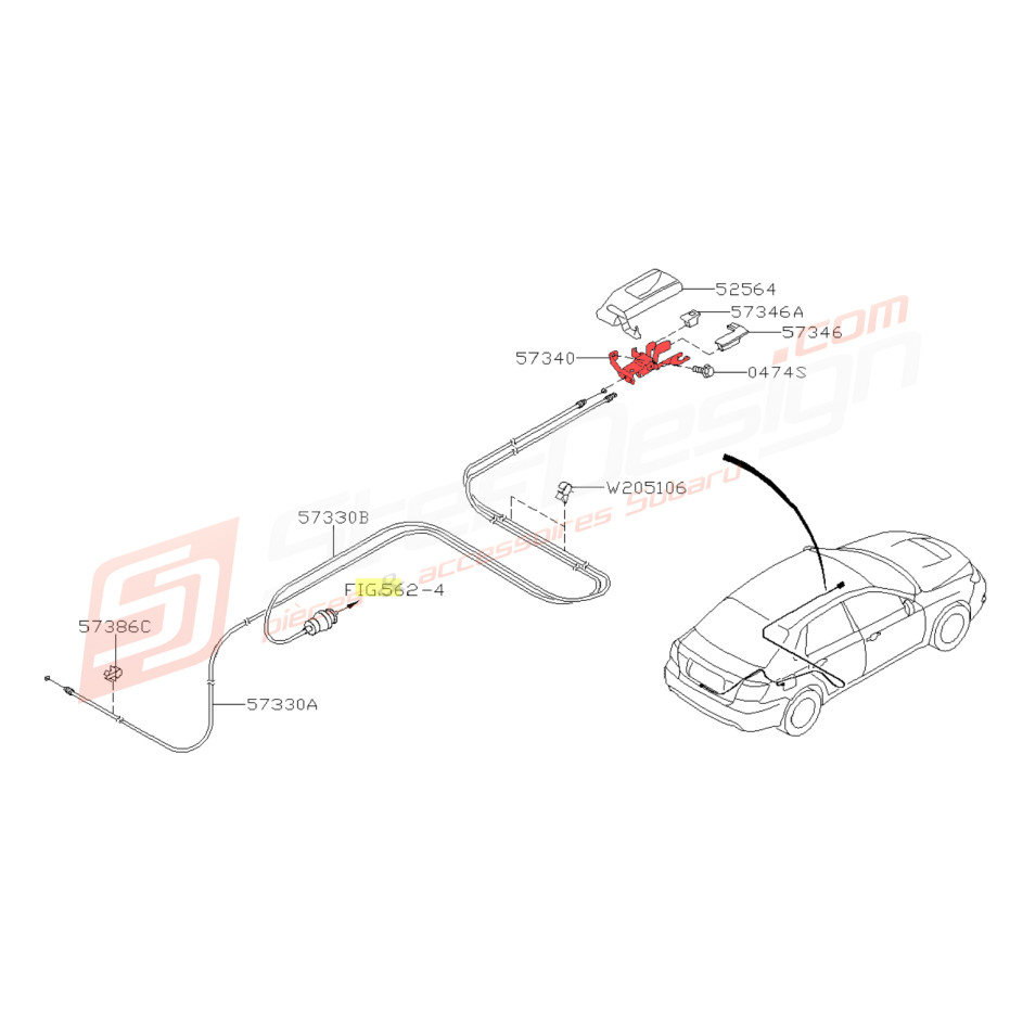 Support des poignées d'ouverture de trappe à essence et d'ouverture de coffre pour subaru impreza STI 08.2011 au 07.2012 (date de fabrication du véhicule pas de la mise en circulation).