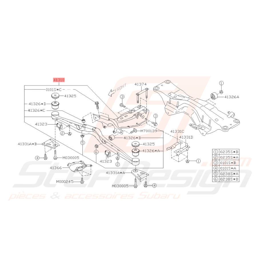 Support Pont Arrière pour Subaru FORESTER Turbo de 2005 à 2007