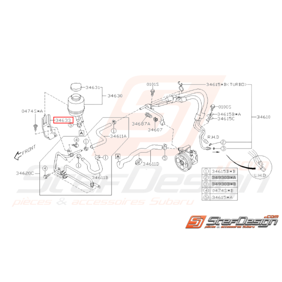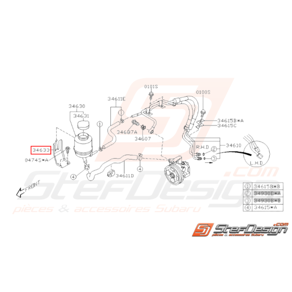 Support réservoir pompe de direction SUBARU WRX/STI 01-07
