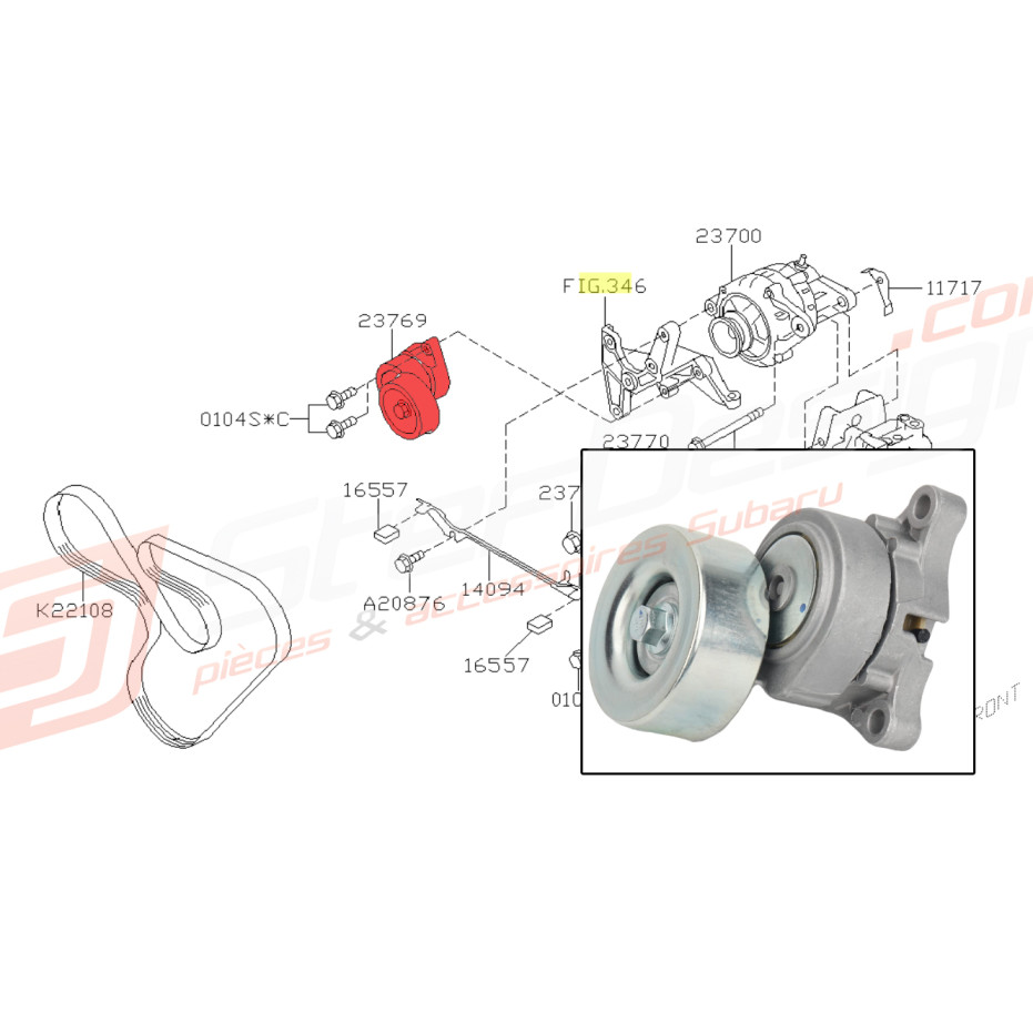 Tendeur de courroie accessoire pour Subaru Outback 3.0R 03.2005 au 06.2006