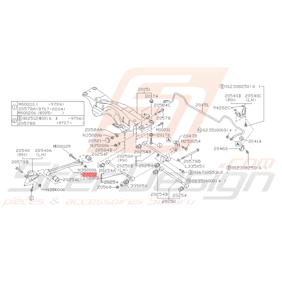 Tirant arrière longitudinal côtés identiques (droite et gauche), adaptables pour Subaru GT, WRX STI et Forester.