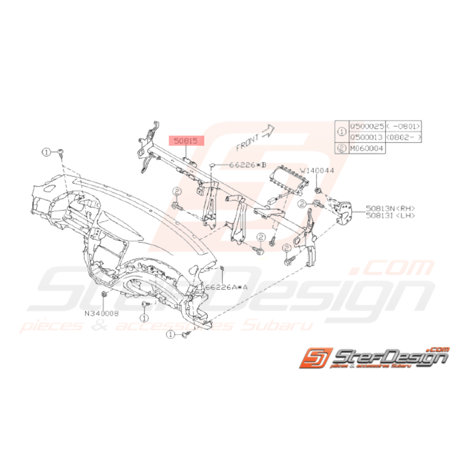 Traverse de tableau de bord pour Subaru WRX STI de 2008 à 2014.