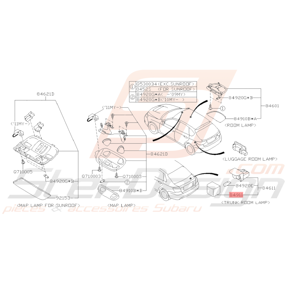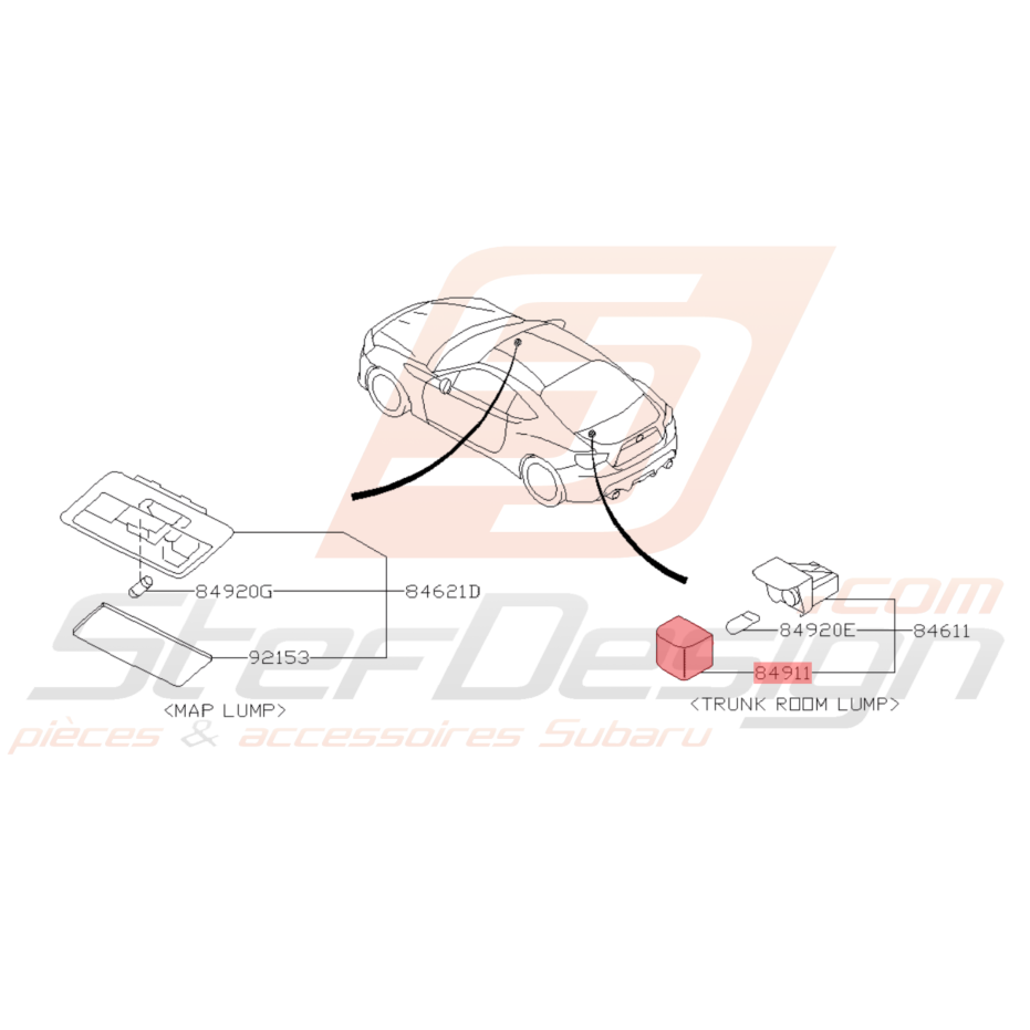 Verre d'éclairage de coffre pour Subaru GT de 1995 à 2000, WRX STI de 2001 à 2014 et BRZ de 2013 à 2019.