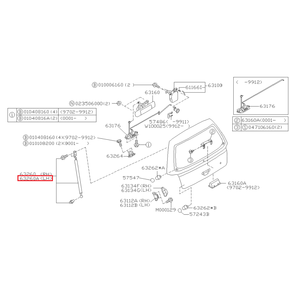 Vérin de Hayon Origine Subaru Forester Turbo 97-11/99