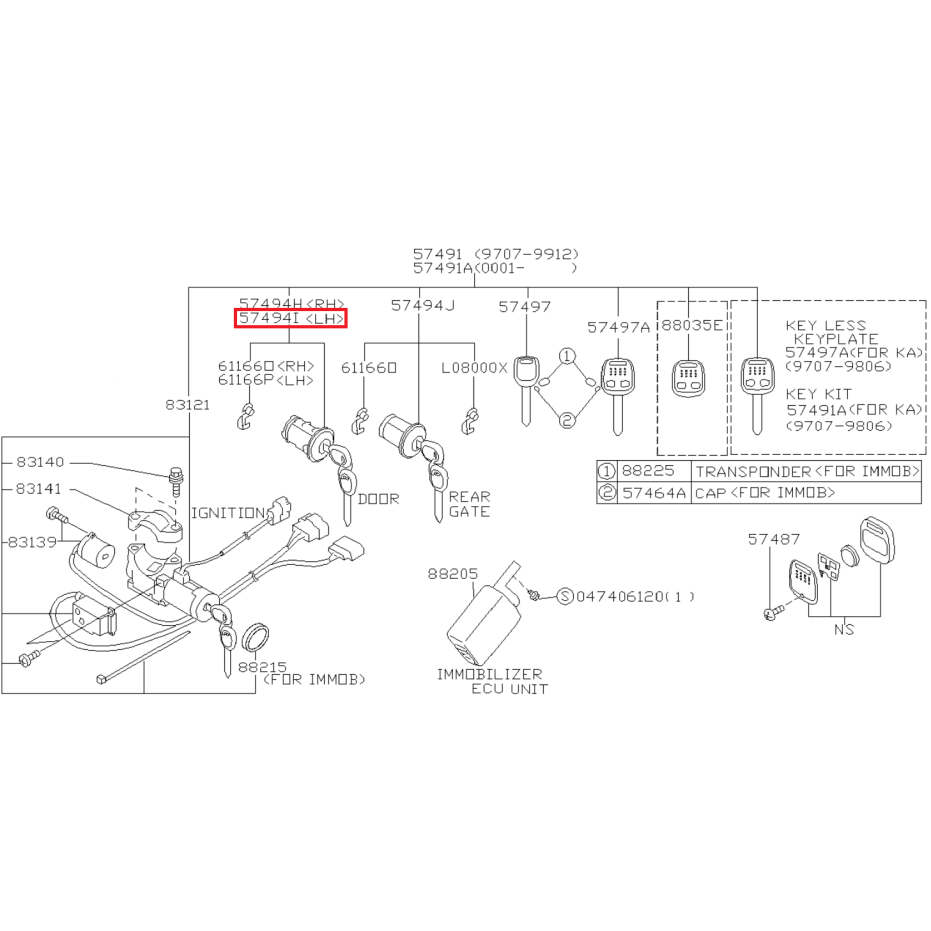 Verrou de Portières Origine Subaru Forester Turbo 97-0241214