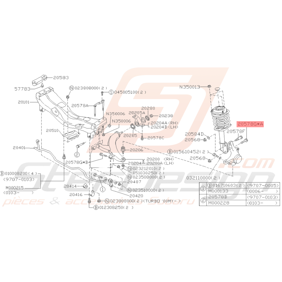 - Suspension Avant pour Subaru FORESTER Turbo de 1997 à 2002