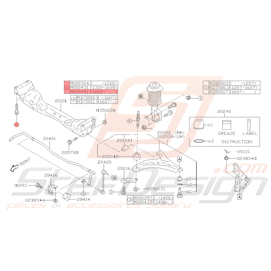 Vis de berceau avant pour Subaru BRZ d'Août 2016 à 2019.