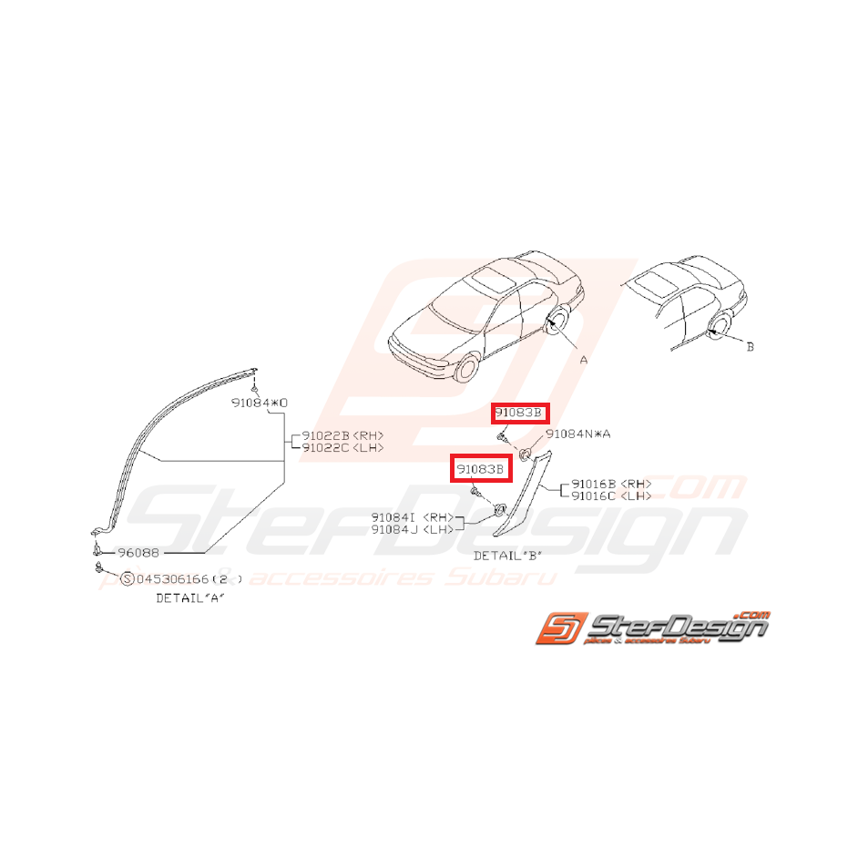 Vis Fixation Capuchon Baguette de Toit Subaru GT 93-00 et Break 93-00