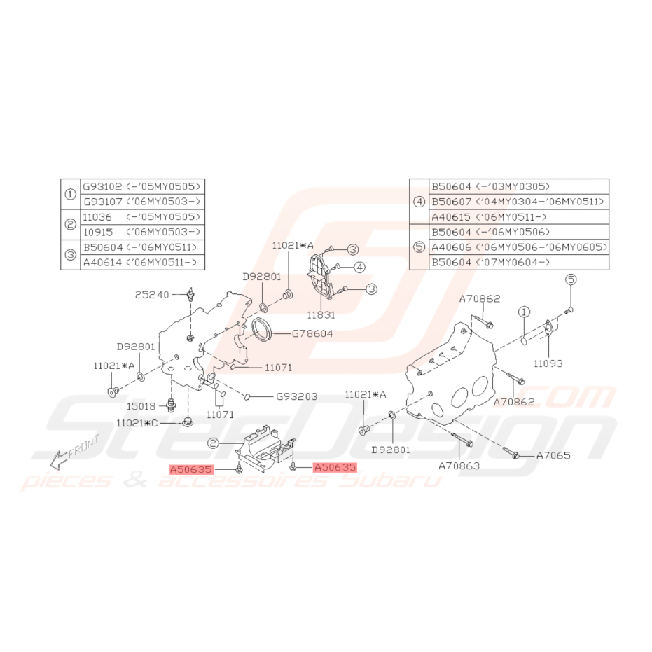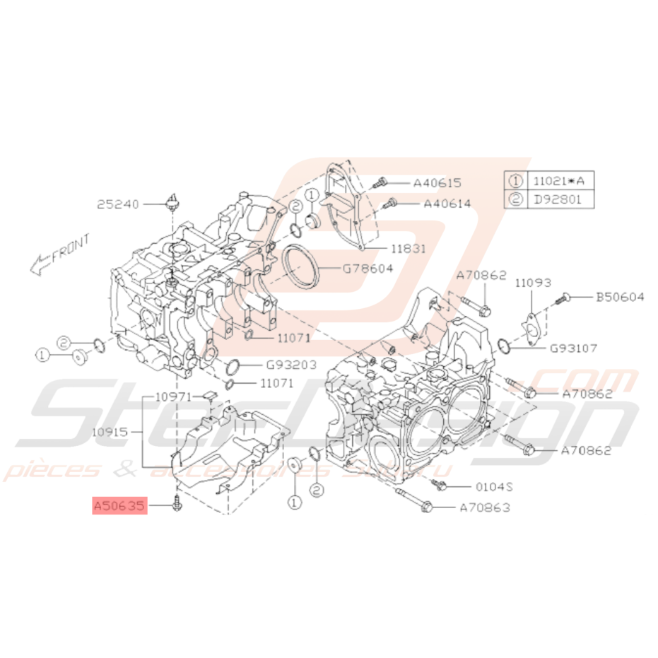 - Carter d'huile de Subaru Impreza GT de 1993 à 2000, WRX et STI de 2001 à 2010, Subaru BRZ et Toyota GT 86 de 2013 jusqu'à Juin 2016