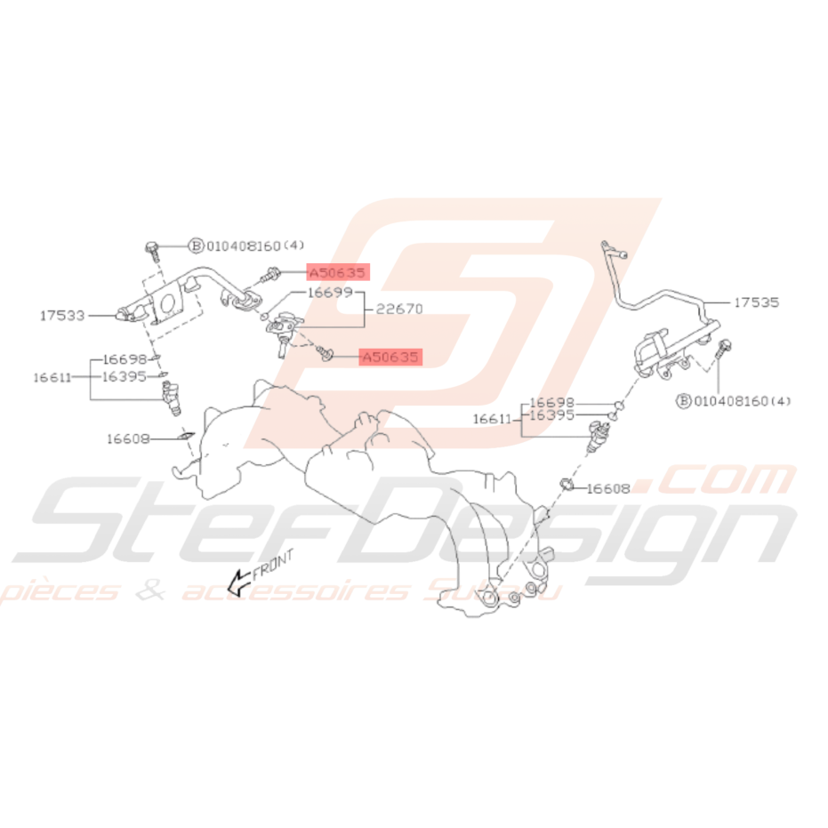 - Schéma de Durites de Carburant pour Subaru WRX STI de 2001 à 2007.