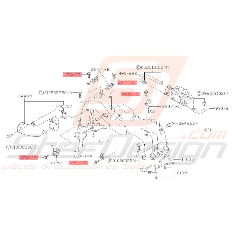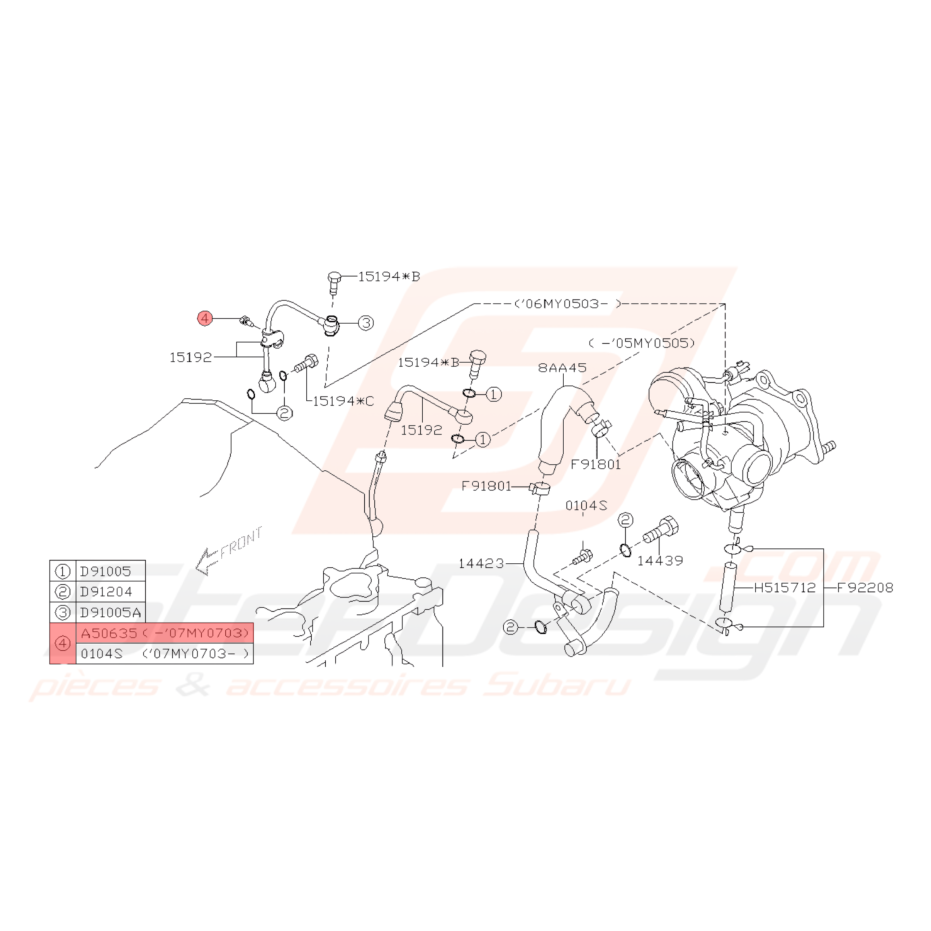 - Schéma de vis et durites de turbo de Subaru WRX et STI de 2006 à 2007