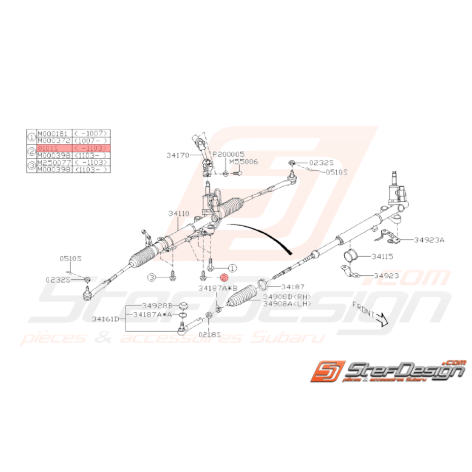 - Crémaillère Direction Assistée pour Subaru WRX STI de 2008 à Mars 2011.