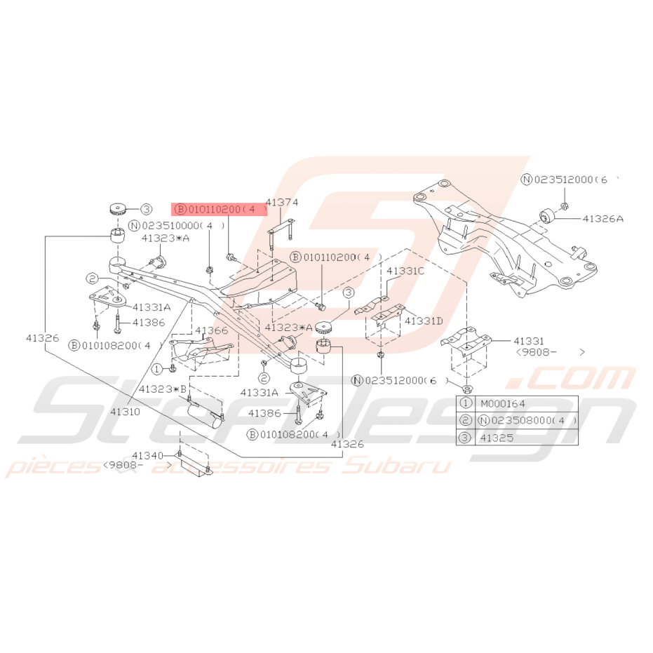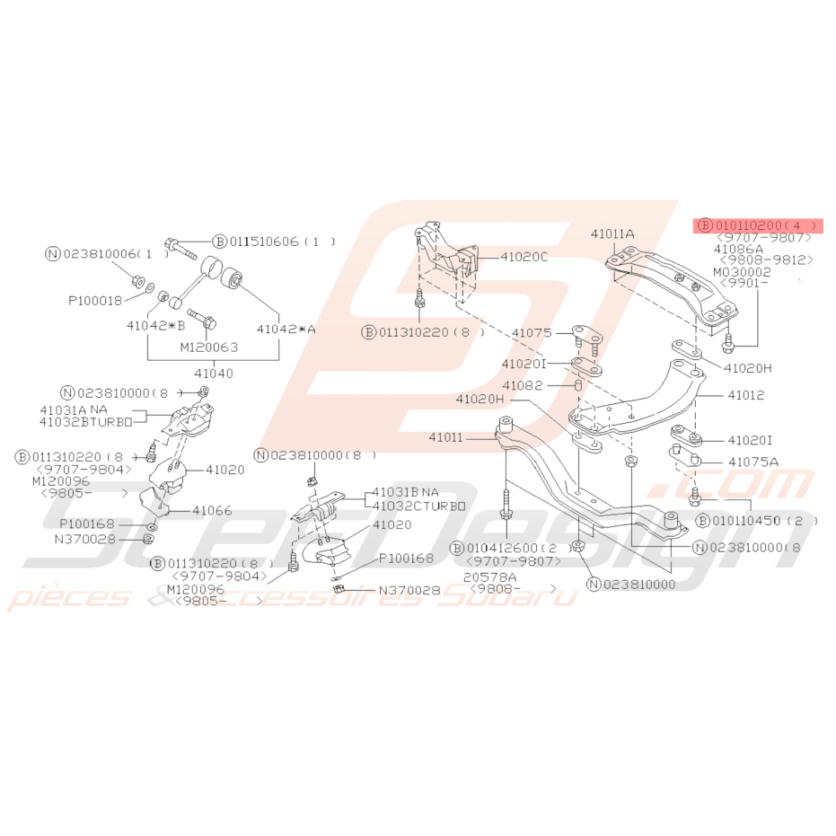 - Support de pont SUBARU GT de 1993 à 2000, WRX et STI 2001 à 2007.