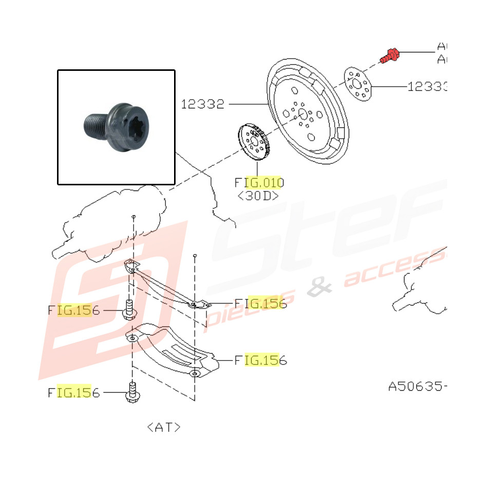 Vis de volant moteur boite automatique pour Subaru Outback 3.0R 03.2005 au 06.2006.