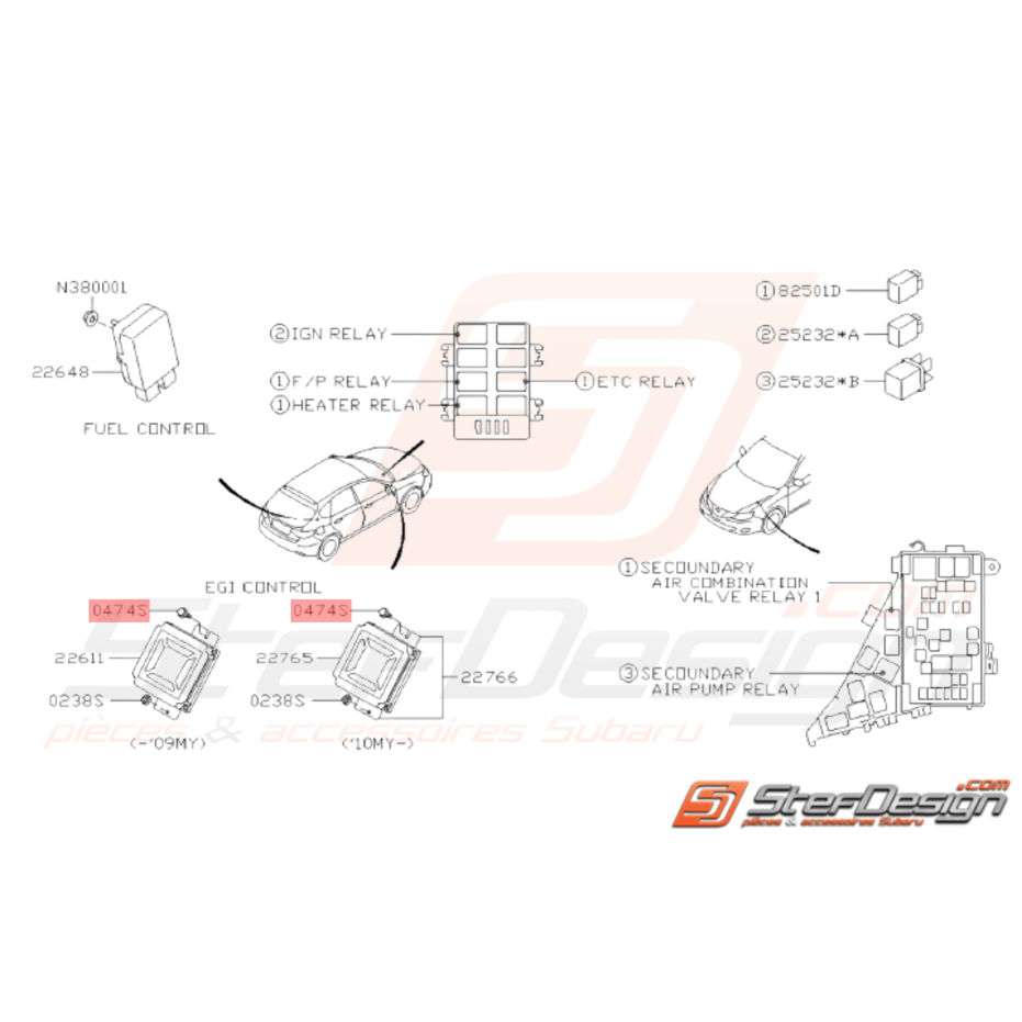 - Relais et sonde moteur de Subaru WRX STI de 2001 à 2014