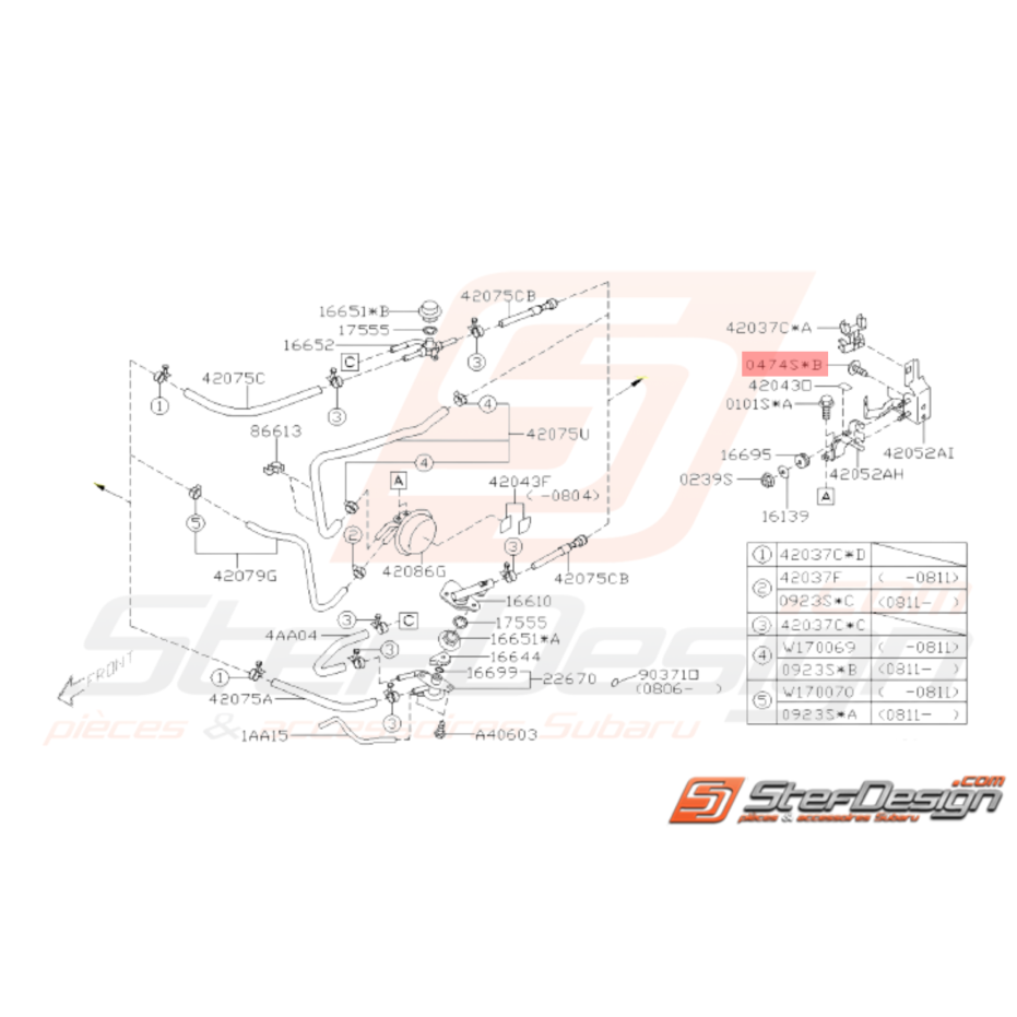 - Bocal et Durites de DA pour Subaru WRX STI de 2001 à 2007.