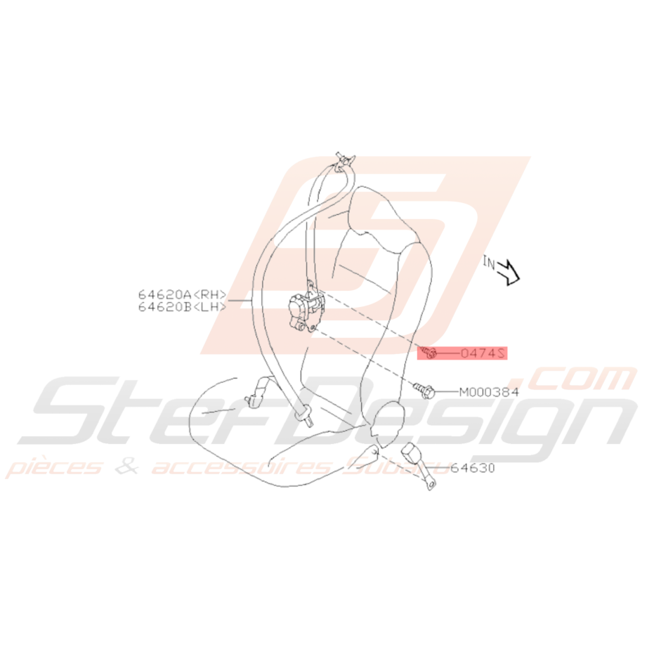 - Ceinture de sécurité de Subaru Impreza GT de 11/1996 à 2000, WRX et STI de 2001 à 2014.