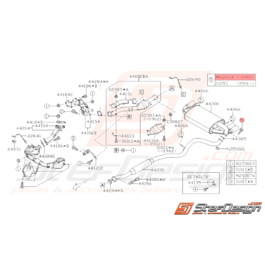 Vis échappement intermédiaire silencieux GT WRX STI Forester Turbo 97-02/05-07