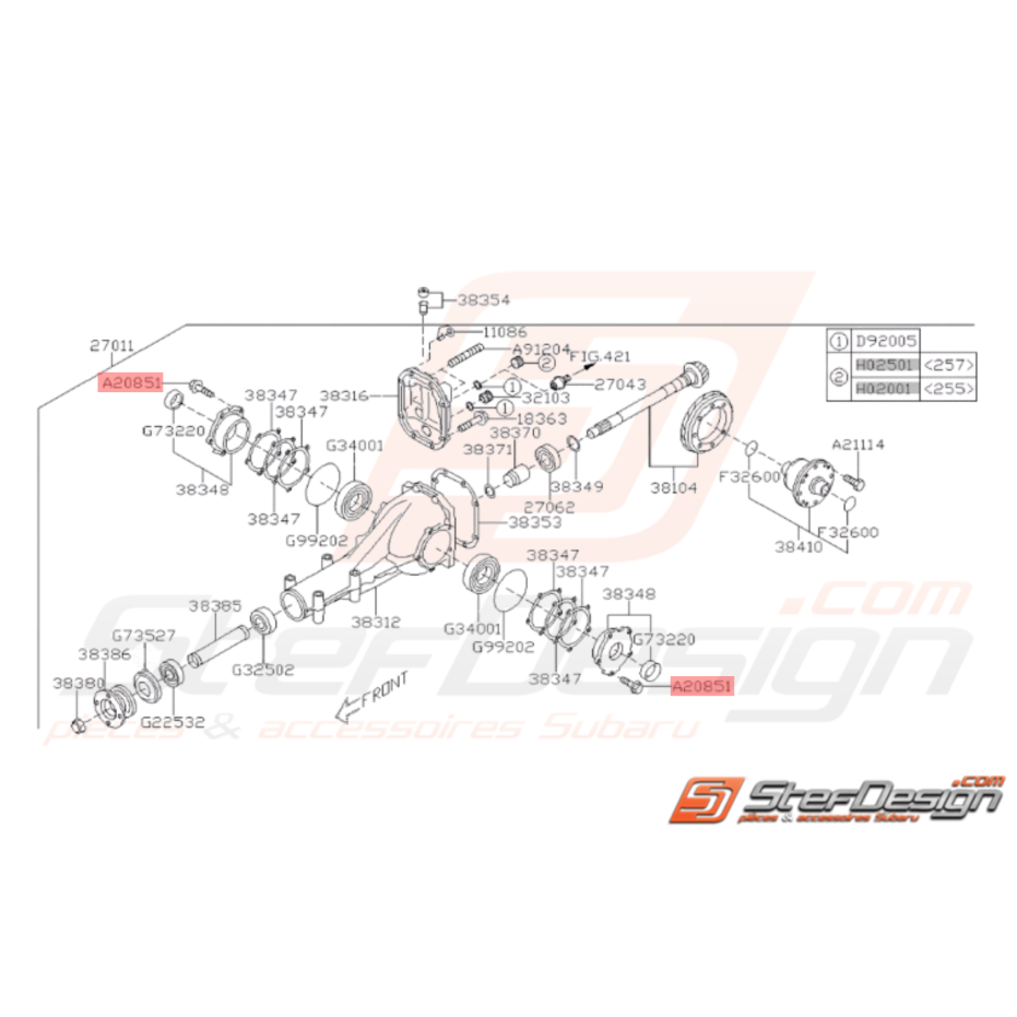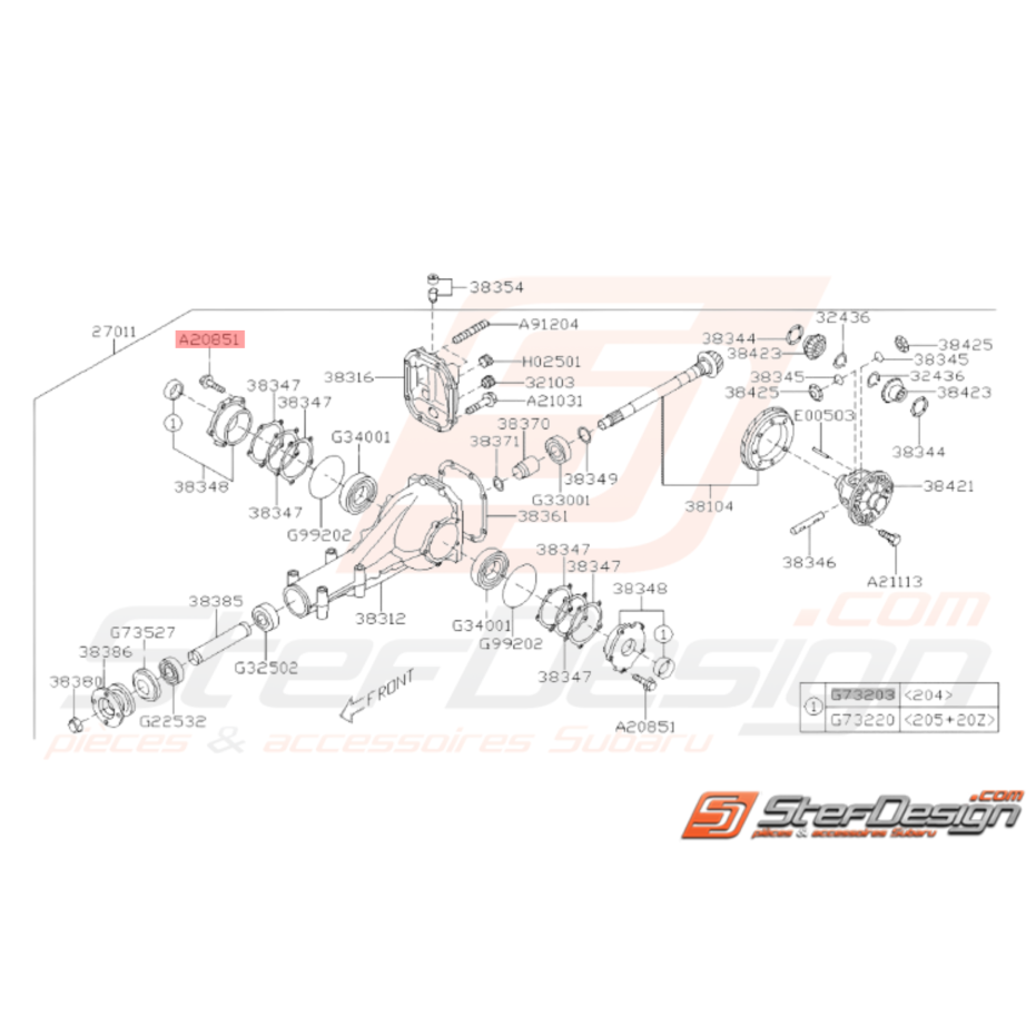 Vis fixation de roulement différentiel arrière Subaru GT 93-00 WRX 01-10 STI 03-14