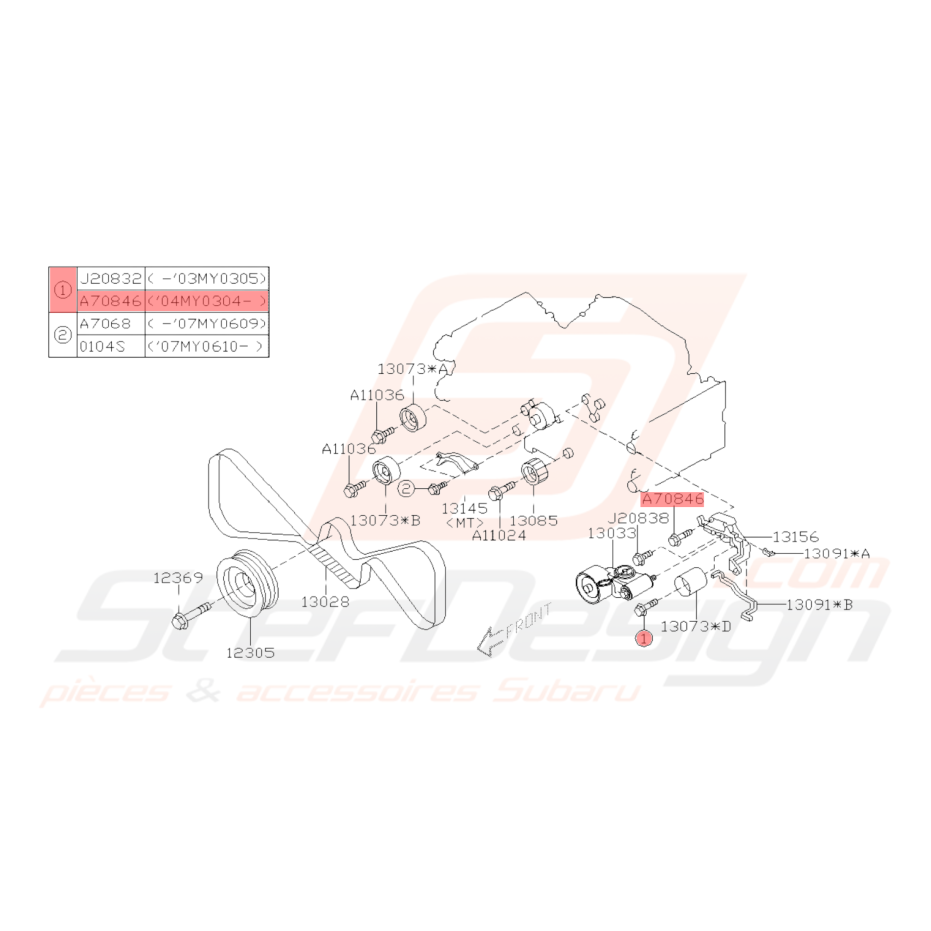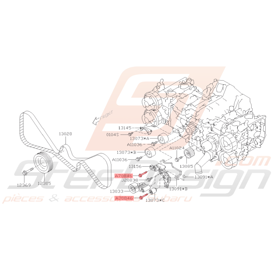 Vis galet rouleau distribution et de support de galet tendeur WRX/STI 03-19