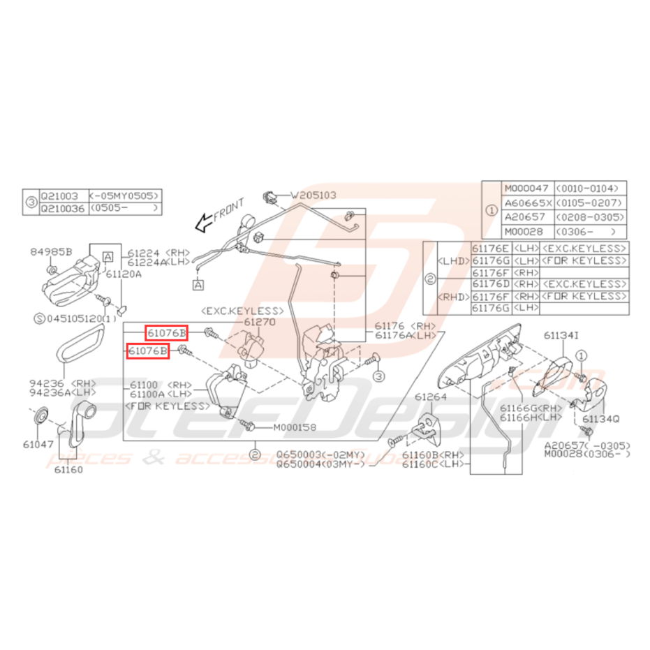 - Schéma Poignée et Système de Fermeture Avant Origine Subaru Forester Turbo 97-02