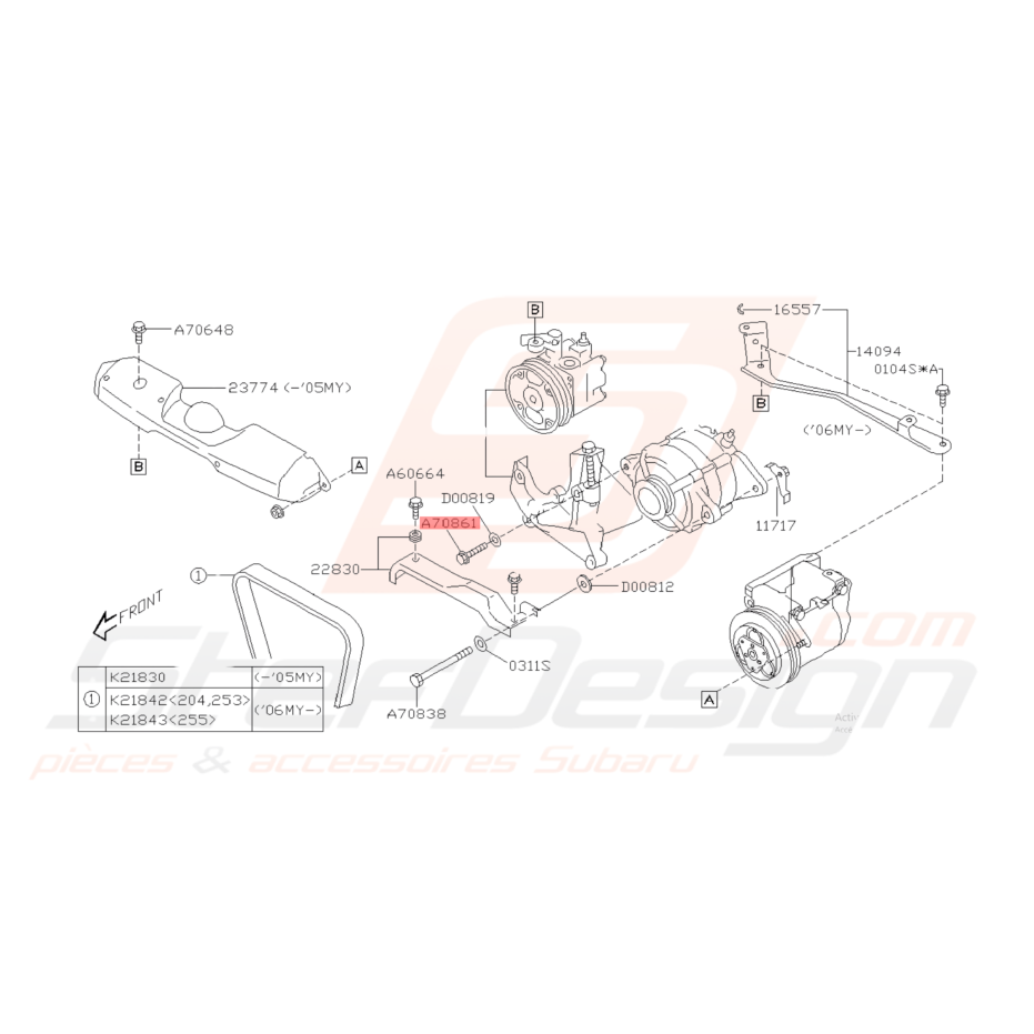 - Courroie Alternateur pour Subaru WRX STI de 2001 à 2007