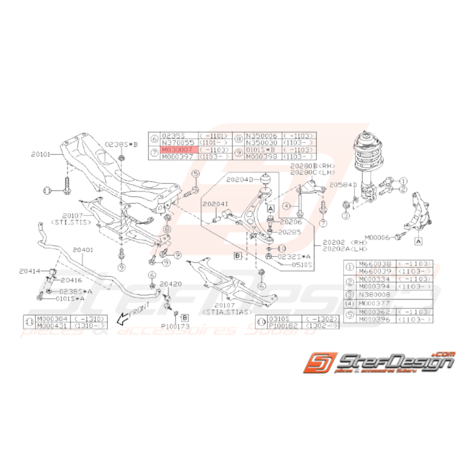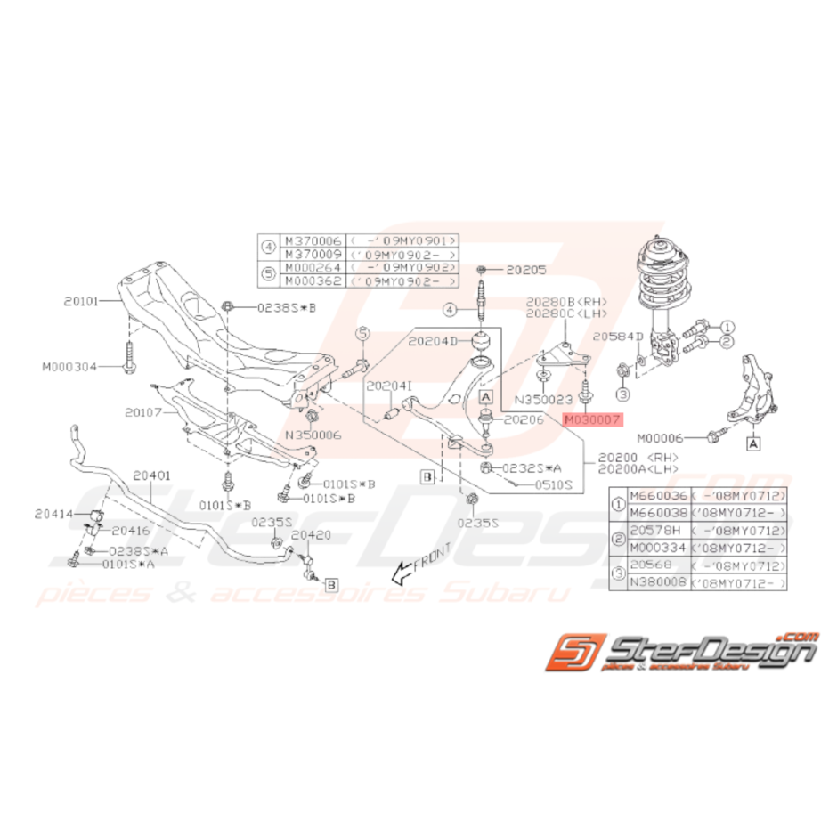 Vis pour Subaru WRX STI de 2008 à Mars 2011