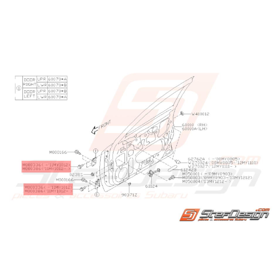 Vis pour Subaru WRX STI de 2008 à 2014 et BRZ de 2013 à 2019.