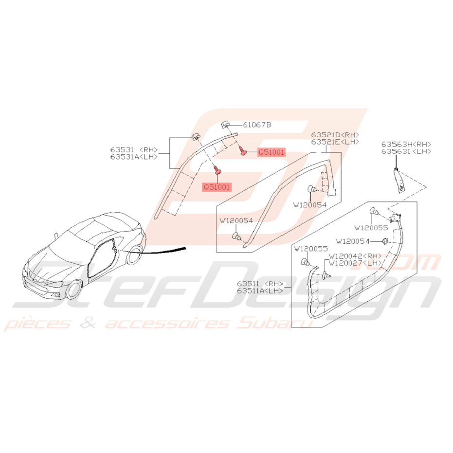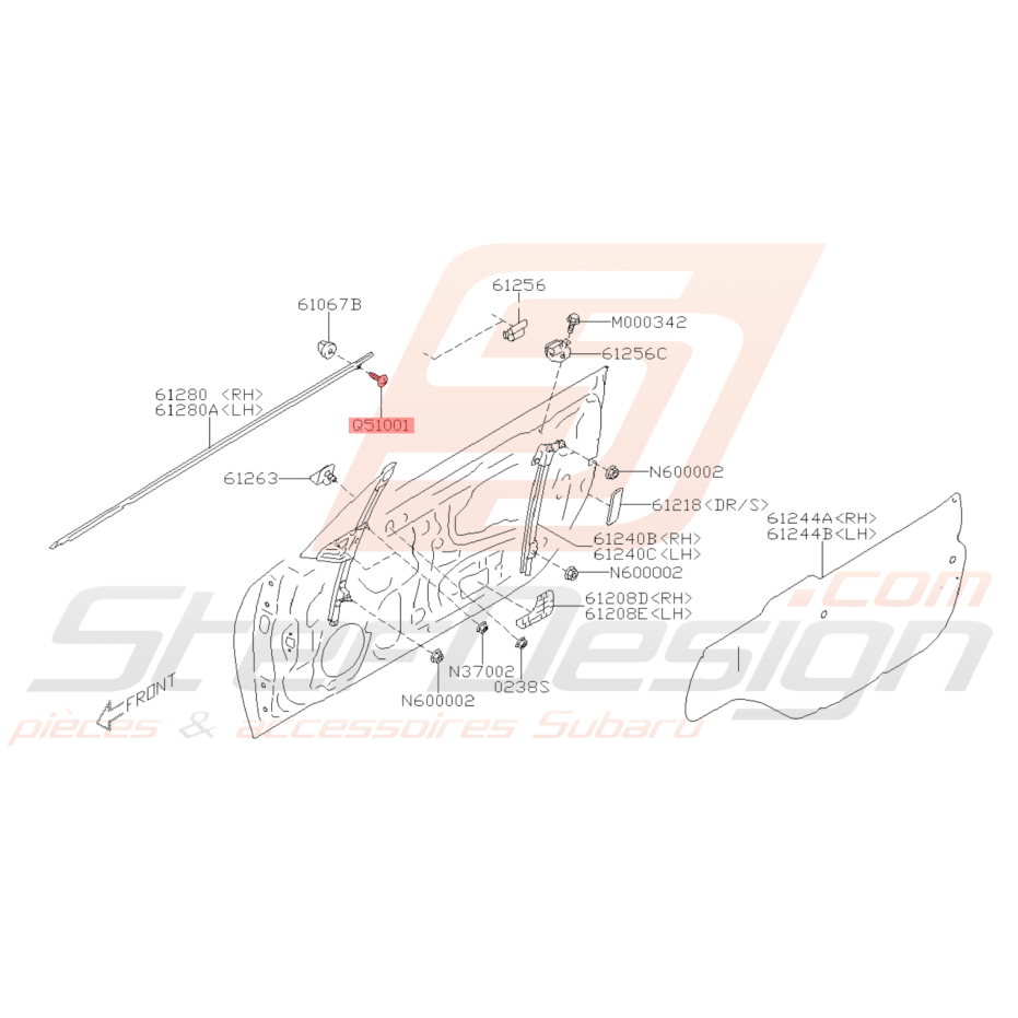 - Schéma Glissières et Panneau de Porte Avant Origine Subaru Forester Turbo 97-02