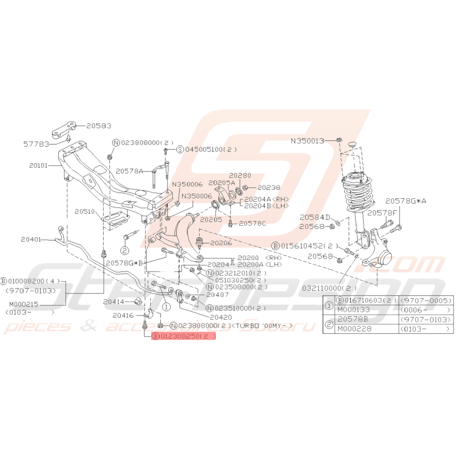 - Schéma Suspension Avant et Arrière Subaru WRX STI de 2001 à 2007.