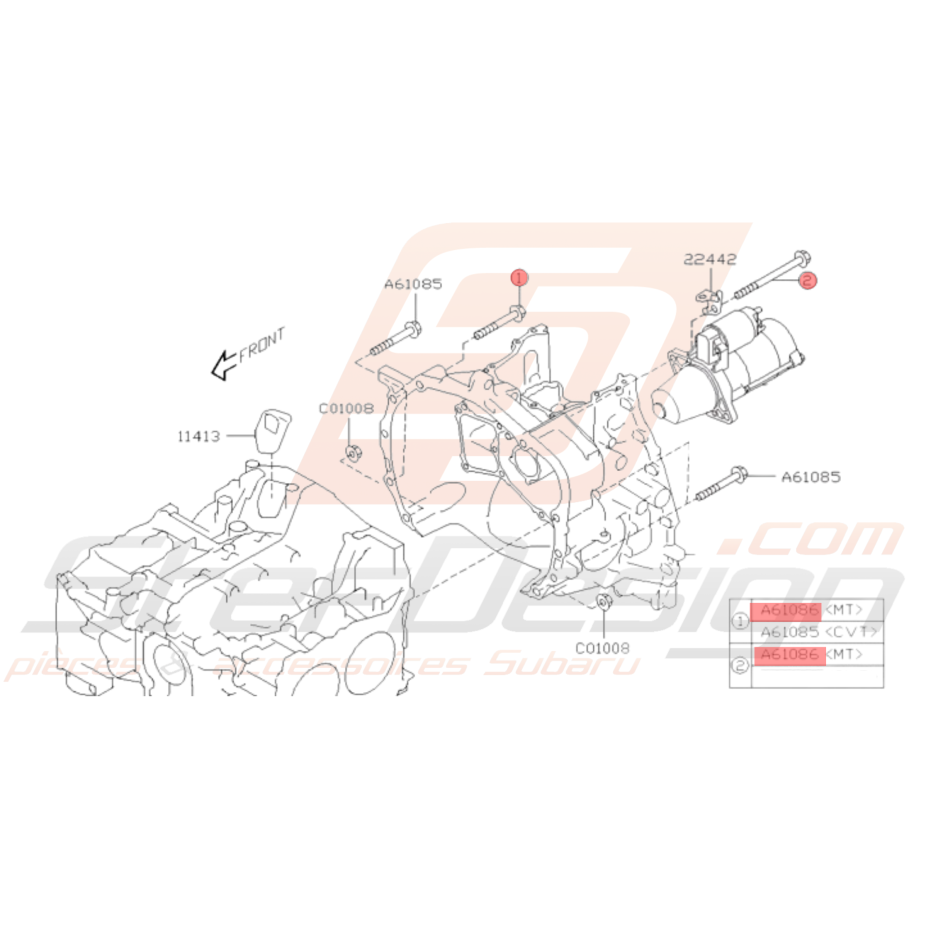 Vis supérieure Fixation Boite de Vitesse Subaru WRX 02/09-10 STI 10-19 BRZ 13-19