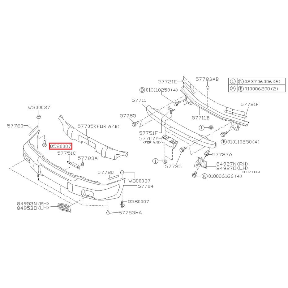 Vis taraudeuse de pare-chocs pour Subaru Forester Turbo de 1997 à 11/1999