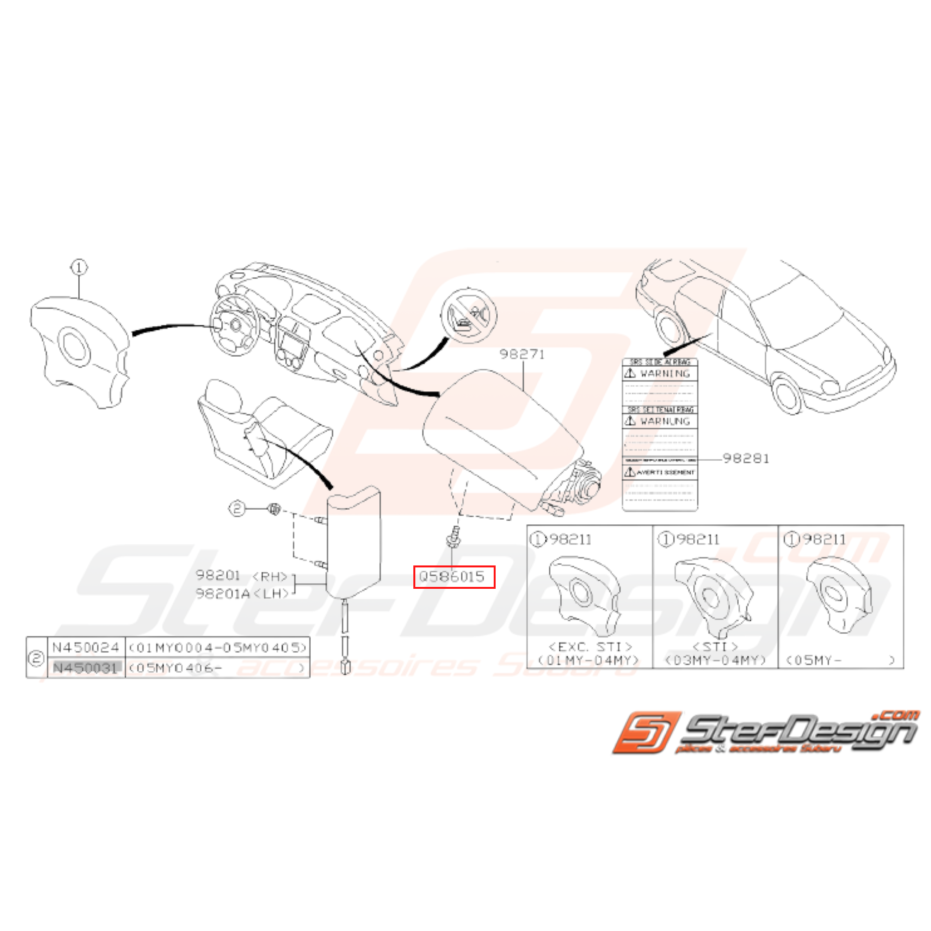 Vis Taraudeuse pour Subaru WRX STI de 2001 à 2005.