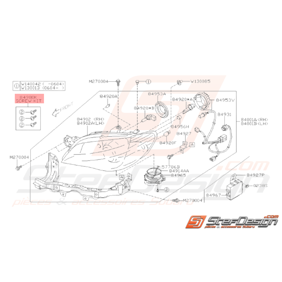 Visserie Phare Xénon pour Subaru WRX STI de 2006 à 2014.